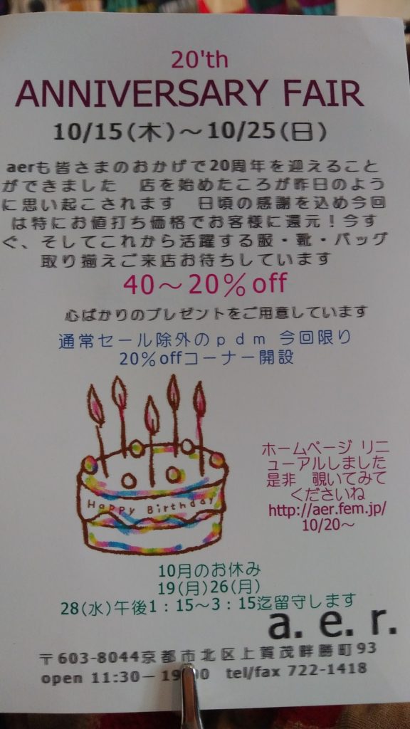 aerへのお問合せは 075-722-1418 又はフォームへ
